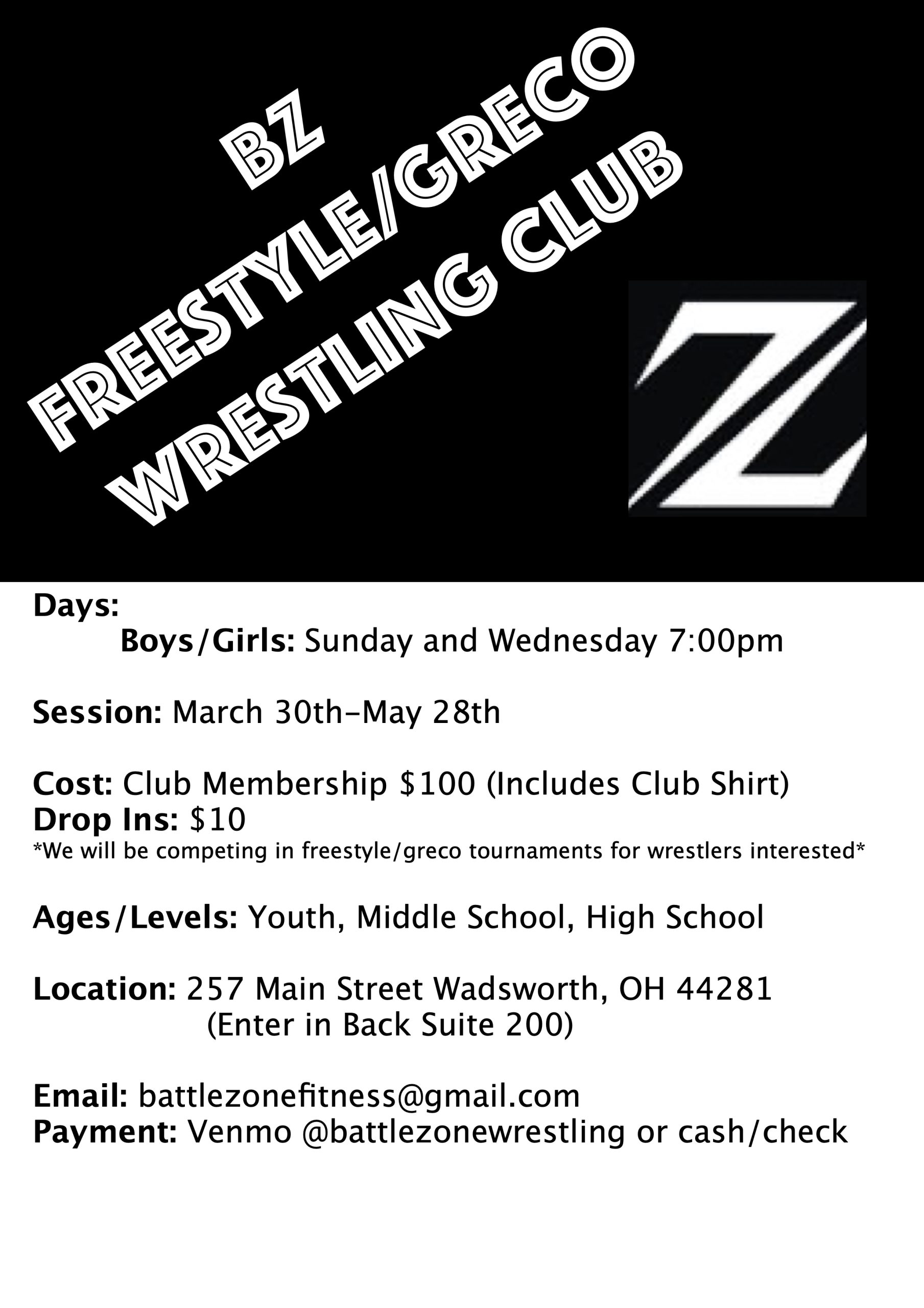 BattleZone consists of youth, middle school, high school, and college wrestlers wanting to advance their training. BattleZone is open to ANYONE looking to put in the extra work and become a Champion in wrestling and life.